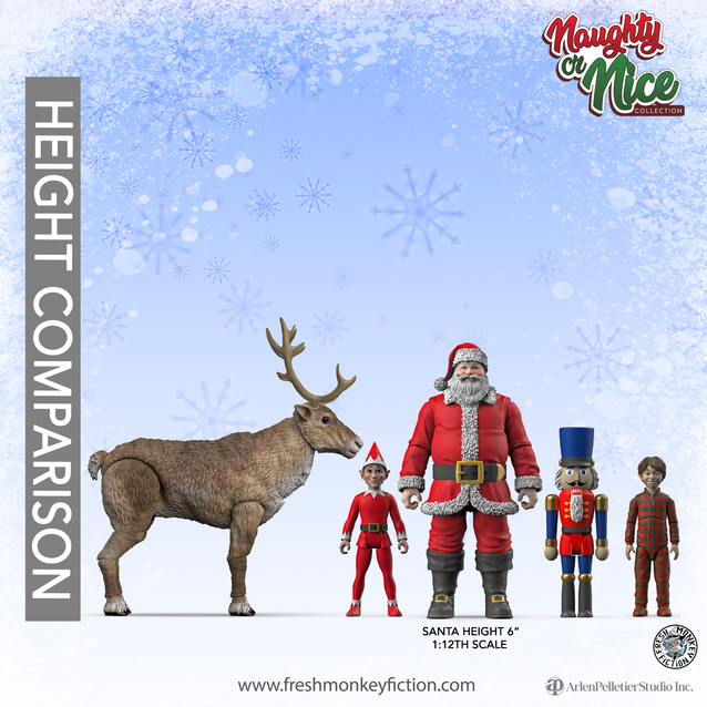 We are continuing our line of Christmas themed 1:12th (6-inch) scale action figures. The Naughty or Nice Collection includes multiple versions of Santa Claus, Elves, Nutcrakers, Krampus and Reindeer.